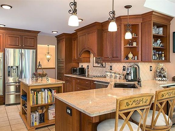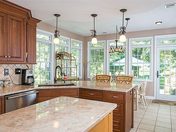 State of the Art Kitchen opens to 25x25 family room , views of park like rear yard and spring fed pond. Renovated inside and out. Very exciting property. Natural beauty and wildlife on this spectacular property, babbling brook and wonderful pond ! The home has Hardi-plank siding, Azack trim , columns and replacement windows. All bath rooms are new to the home. The kitchen features Viking appliances, double oven, wine cooler, granite tops and custom cabinetry. There is under counter lightning , a pot filler over the cook top, a center island, plus penisula and charming separate eat-in area with vaulted ceiling, all over looking rear yard and pond. The property features major additions , circular drive way, large detached garden sheds, patio area and decks.