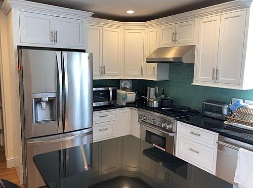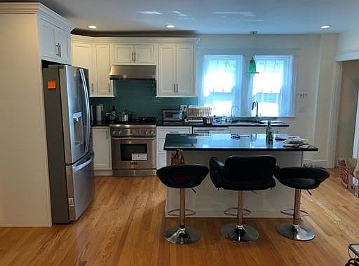 Brighton!! This luxurious OPTIONALLY FURNISHED, 2 bedroom 2 full bathroom newly renovated condo is steps from the express bus to Boston! Bright & Spacious family room open to a newly renovated kitchen with top of the line cabinetry, stainless appliances including Thermador gas range, fridge with double doors & water/ice dispenser, pull out freezer, granite counters, beautifully tiled backsplash. Enjoy your morning coffee at the breakfast bar center island! 2 spacious bedrooms including master with its own private bath which has also been renovated beautifully sparing no detail including modern vanity, tastefully tiled shower, separate make-up mirror & state of the art silent exhaust fan. 2nd bathroom is similar. Recessed lighting, central AC, hardwood floors throughout, deck of kitchen, beautiful porch in the front. This first floor condo has it all! Off Street parking for 2 cars, basement with storage & top of the line front loading washer/dryer.