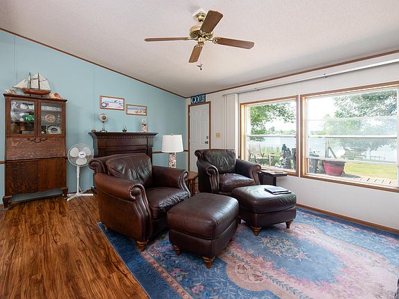 This 3 bed, 2 bath lake cabin has everything you need to get away and take in rest and relaxation while still having the comforts of home. There is a primary suite with a walk-in closet, primary bath, and waterfront windows! The large kitchen has a sit-up peninsula with stools and is directly adjoined to the dining room. The two additional bedrooms are spacious with waterfront windows and have a second full bathroom just across the hall. The cabin has two separate living spaces for entertaining family and friends. The family room is just off the two bedrooms and the main living room looks out to the lakefront and has a walk out onto the huge lakeside deck! The lot is flat and has an amazing amount of shoreline with room for all the watertoys you can imagine. This cabin is ready for its next owners, with the dock, boat lift, and boat included!