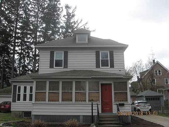 Wonderful family neighborhood with this hip roof colonial priced for the handyman! Easy conversion to 3BR. Nice level lot with detached 1 car garage. Gleaming HW's, needs interior paint.