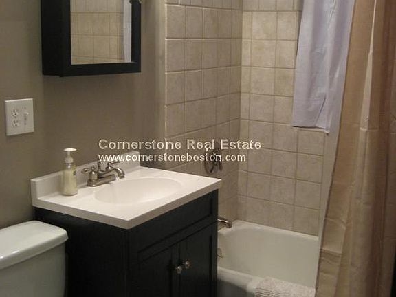 Beautiful 4 bed 1 bath unit on Bucknam St in Mission Hill. All bedrooms are large enough to fit a queen bed, dresser and have excellent closet space. Hardwood floors, ceiling fans and nice, original woodwork in all rooms including the spacious living room. Large eat-in kitchen has been updated with dishwasher, disposal, granite counters and maple cabinets. Excellent cabinet space. Bathroom has been renovated with travertine-style tile, brushed nickel fixtures and nice finishes. Central heat (gas) and AC to help keep you comfortable. Coin-op laundry is in the basement.