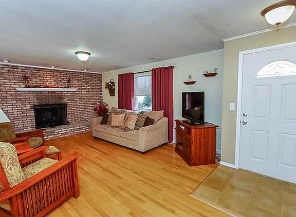 All brick raised ranch with nice backyard with deck, 3 bedrooms, 1.5 baths and a finished lower level with family room with bar and entertainment area! Inviting main level living spaces with new light fixtures throughout with kitchen upgrades that includes countertops and breakfast bar. Hardwood floors, living room fireplace, new roof, soffit and fascia in 2013. Also newer front and side screen and entry doors, garage door and openers! Tiled entry, sliders to the deck, washer and dryer available, too!
