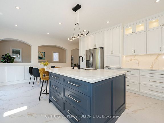 Welcome to this rarely offered, meticulously renovated masterpiece from the esteemed Monarch builder with over 3000 sq ft of space. Nestled in one of Markham's most sought-after areas, this bright and spacious home seamlessly blends luxury and comfort, perfect for modern family living. Step inside and be greeted by an impressive 18-foot soaring entry foyer that flows gracefully into the elegant living and dining rooms, adorned with wainscotting and pot lights throughout, creating a sophisticated ambiance for entertaining or relaxing with loved ones. Engineered hardwood flooring flows throughout the entire home, while bullnose cornered walls add an extra touch of elegance and refinement. The chefs kitchen is a culinary dream, equipped with stainless steel appliances, gas stove, quartz counters, ample storage, and a built-in espresso bar complete with a wine fridge. This inviting kitchen connects to the open-concept family room, featuring an 18-foot sloped ceiling ideal for gatherings and cozy evenings at home. Or directly out to the private backyard oasis, which offers a serene escape for outdoor gatherings or quiet evenings. Retreat to the primary suite, where you'll find a luxurious ensuite bathroom featuring a soaker tub, his-and-her sinks, and a glass-enclosed shower. In addition, there are three other well-sized bedrooms, each with access to ensuite or semi-ensuite bathrooms, ensuring comfort and convenience for family and guests alike. This home is situated in a high-demand area known for its exceptional school system, including the highly-ranked Markville Secondary School and Central Park Public School. Plus, you're just moments away from Markham GO station, Markville Mall, Main Street Unionville, and the vibrant Downtown Markham.