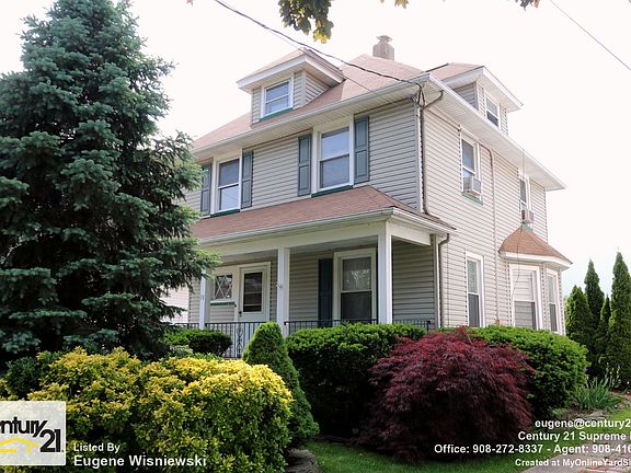 Conveniently located 3 br colonial 1/2 mile from the Cranford Train Station and center of town. Features include new carpeting, freshly painted interior, vinyl siding, replacement windows , inviting front porch, walk up attic for additional storage, large yard, low taxes, and more.