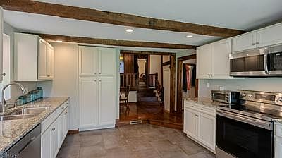 Modern Colonial Farmhouse - fully updated to the 21 st Century with loads of Old World charm and character. If you like older Homes, you will love this custom one of a kind renovated Home! Old Beams, Barn Doors, loft, gorgeous floors, built in Furniture and 2 Fireplaces provide character, but the renovated Eat-In Granite Kitchen with new Appliances will wow you. Secluded Master Bedroom with cathedral ceiling and full Bathroom, Family room with a Stone wood burning Fireplace, Rocking Chair open Porch, old Blacksmith Barn make the perfect Shop and a rec room in the walkout basement with a gas stove complete this home for Country living. Public Trails at the edge of the backyard lead to great fishing spots and nature hikes. Brand new natural gas Furnace and everything else is less than 4 years old!