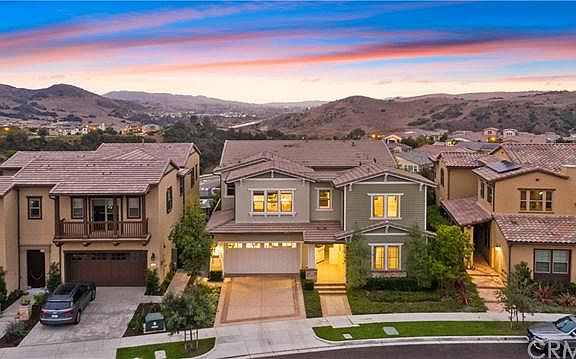 Enjoy breathtaking, ocean, city lights & hills views from this stunning former model home in Aubergine w over $436k in upgrades, 1 of only 7 lots with this view! Entertain in the chef's appointed kitchen featuring Wolf, Sub Zero & Asko appliances, butlers pantry w 2 dual zoned wine coolers & oversized island that seats 7! Custom wainscoting, doorway encasings, designer paint & custom wood floors downstairs. Elegant master suite has romantic views & you can watch the night sky from bed, or stargaze from the Balcony. The spa inspired bathroom features tumbled marble floors, shower & countertops with jetted tub & his/her custom walk in closets. Upstairs offers a media room/loft, w built in cabinetry & custom TV encasing, perfect for teens or guests. 2nd level offers 3 addtl bedrooms w ensuite custom baths. Office boasts beautiful French Doors & views of the courtyard/breezeway. A luxurious casita enjoys its own outdoor fireplace & lounge area, french doors, its own heating/AC, beautiful marble shower & sink countertop & generously sized walk-in closet. Backyard has a fireplace, covered patio, oversized spa, sound system, BBQ kitchen area for garden parties or cooling off with a frosty beverage. Additional upgrades are extensive, including Elan Smart Home monitoring system, solar, dual zoned AC, dual tankless water heaters, custom storage cabinets, epoxy floor in the 3 car garage & sound system throughout. Enjoy all amenities Rancho Mission Viejo has to offer! Please enjoy video.