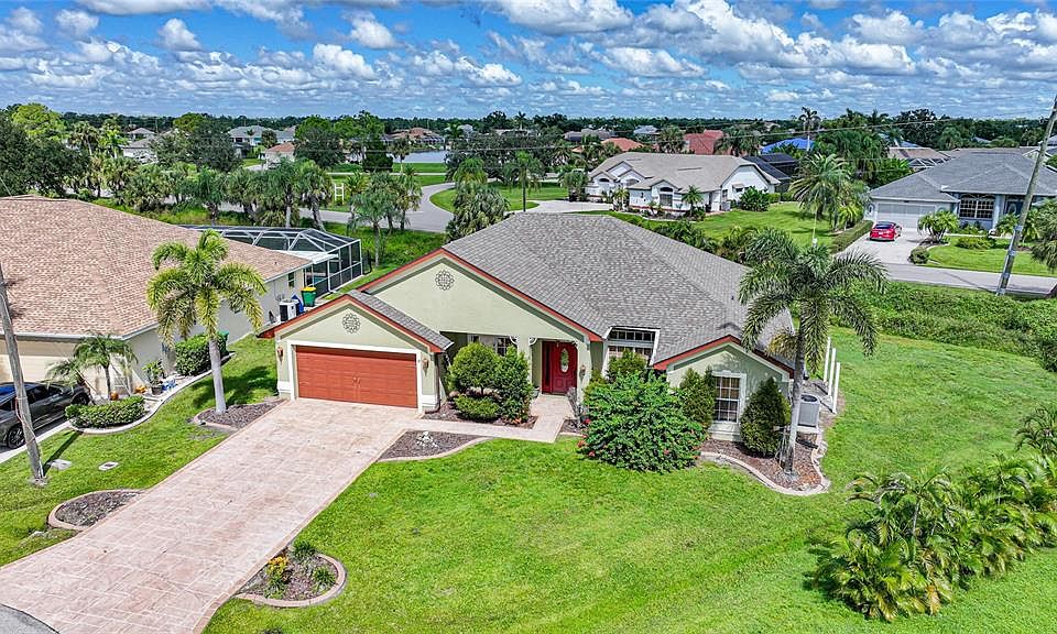 Welcome to this beautifully maintained 4-bedroom, 2-bathroom home, perfectly situated on a quiet cul-de-sac in the highly desirable Deep Creek community of Punta Gorda. From the moment you arrive, you’ll appreciate the inviting curb appeal, mature landscaping, and the sense of privacy that comes with this ideal location. Step inside and you’ll immediately notice the bright, open layout designed with both comfort and functionality in mind. The home features a split floor plan, offering privacy for the primary suite while still keeping everyone connected. The remodeled kitchen is a true highlight, blending a classic, timeless design with practical updates, making it the perfect space for both everyday living and entertaining. Both bathrooms have also been thoughtfully remodeled, showcasing clean finishes and a fresh, inviting look. Natural light fills the spacious living and dining areas, creating a warm and welcoming atmosphere throughout. Sliding glass doors lead you out to the large lanai, where you’ll enjoy a private outdoor living space that’s perfect for morning coffee, weekend barbecues, or gatherings with family and friends. The primary suite includes a generous layout with plenty of closet space and an updated ensuite bathroom. Three additional bedrooms provide flexibility for guests, a home office, or hobbies. This home offers the best of both worlds—peace and quiet in a tranquil neighborhood, yet conveniently located close to shopping, dining, golf courses, parks, and I-75 for easy access to Sarasota, Fort Myers, and beyond. Don’t miss the opportunity to own this move-in ready home in one of Punta Gorda’s most sought-after communities. Whether you’re looking for a full-time residence or a seasonal retreat, this home checks all the boxes.