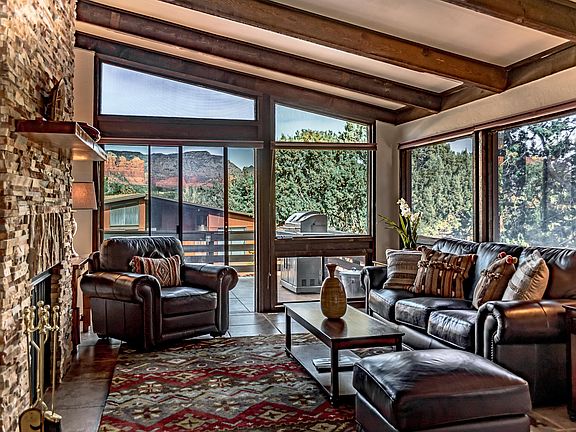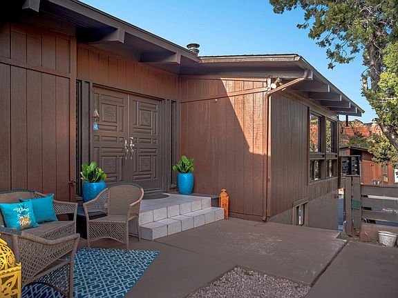Open deck off living room/dining takes in expansive red rock views! Wood burning fireplace, updated kitchen with granite counters & cabinetry, vaulted exposed wood beam ceilings & remodeled downstairs guest bath. Owner's & guest bath ready for update. Downstairs bedroom has new carpet all the way up the spiral stairway and the downstairs bath has been remodeled. Fabulous location for easy access to library, bakery, restaurants, juicery, hiking & biking trails, theaters & stores. Massive basement storage space over 750 sf !
