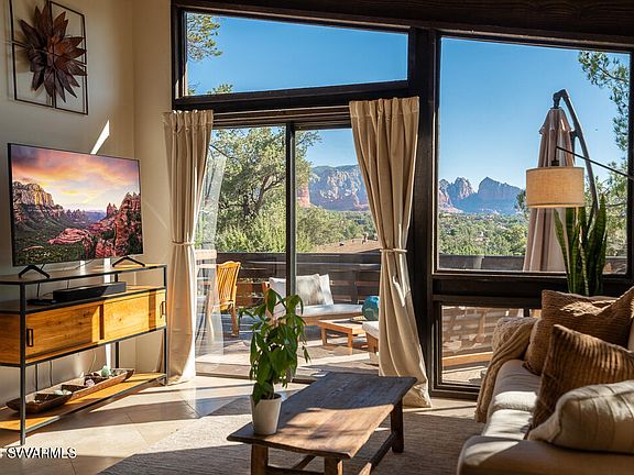 Panoramic vista of Sedona in all her glory! Red Rock views from upstairs and downstairs in this Mid Century Modern tasteful beauty. Completely finished basement with views of Cathedral Rock, main level living with option of in law living w/kitchenette on lower level, along with external and internal entry access. Vaulted ceilings, two decks, amazing Red Rock views, perfect location in West Sedona for hiking and amenity access, and furniture package available: what else could you ask for? Multiple hiking trailheads less than one mile away from property. Layla's Coffee Shop two blocks away. Famous Pizza two blocks away, The Local Juicery for smoothies/salads/ /acai bowls two blocks away, Basecamp Sedona Beer Company three blocks away. Beauty bar two blocks away, Hair Salon two blocks away.