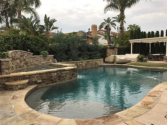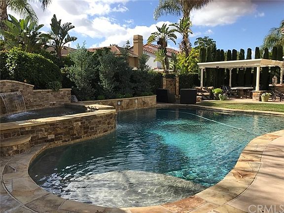 An entertainer's dream! Enjoy the CA lifestyle w/ a dip in your own private pool, relaxing in the spa w/ cascading waterfall, enjoying conversation around the cozy firepit or lounging in the covered sitting/dining area w/ built-in barbeque & fountain water feature that compliment the expansive patio & pool area. The dramatic formal entry w/ curved staircase welcomes you inside this stunning executive home. The formal living room is highlighted by an inviting fireplace w/ mantle; formal dining room has butler pantry adjacent for entertaining; spacious kitchen features a center island w/ large breakfast counter, built-in refrigerator, gas cooktop, granite counters, desk & includes a roomy eating nook; family room is open to the kitchen & features a raised hearth gas fireplace & built-ins; one bedroom/office is conveniently located downstairs & offers a private bath w/ a remodeled walk-in shower; a powder room & laundry room complete the lower level. Upstairs includes a grand master master suite w/ sitting area, built-ins & luxurious bath w/ separate tub & shower & dual vanities; a junior suite w/ built-ins & private bath; Jack-n-Jill bedrooms that share a bath; & an oversized bonus room w/ built-ins & 2 computer work stations at the entry. Upgraded w/ gorgeous Marlborough hardwood flooring on the lower level; lots of recessed lighting; ceiling fans; custom window treatments; tankless water heater & solar pool heat. Four car tandem garage provides lots of room for storage.