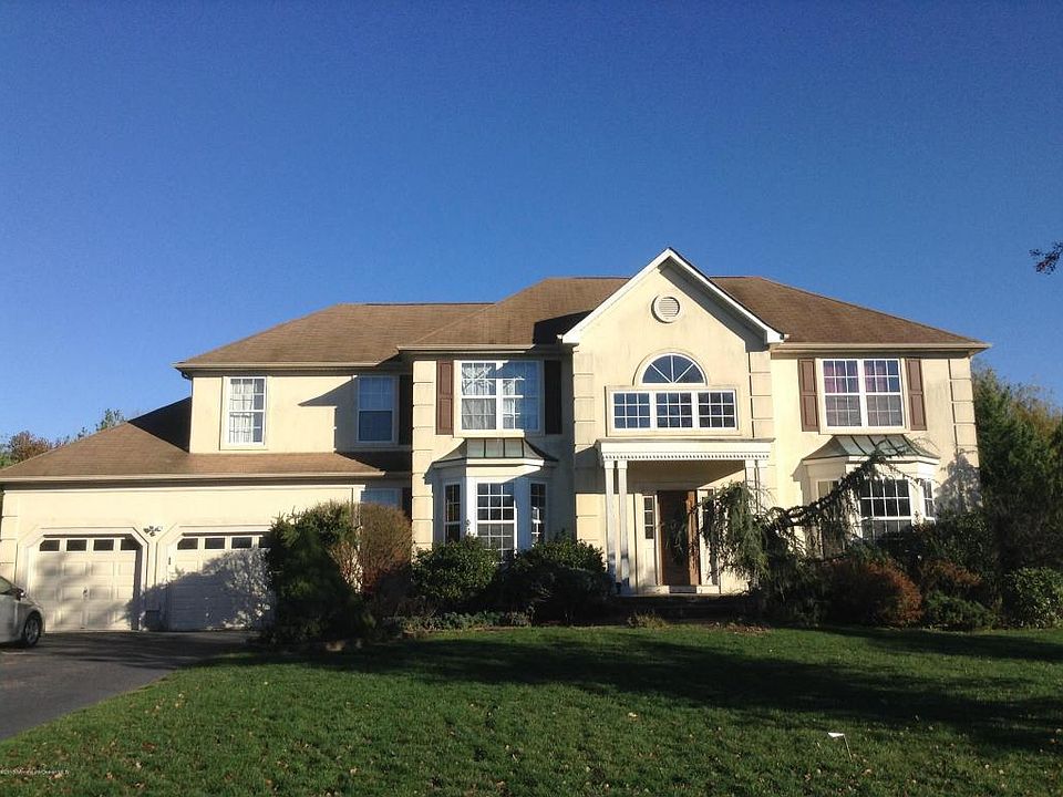 SHORT SALE, diamond in the rough. Stucco Center Hall Colonial with 5 beds, 3 baths, 2 car garage boasts of open floor plan: 2 story foyer, living and dining rooms with bay windows, cozy family room with gas fireplace, adjacent to kitchen with stainless appliance pkg and center island. Breakfast nook leads to deck and expansive backyard. Huge Master bedroom with vaulted ceiling, walk-in closet, matching his and hers vanities, shower stall, and jacuzzi tub. 1st floor also offers 5th bedroom or home office. Freshly painted interiors with neutral colors. Full unfinished basement has amazing potential. Central Air not working, needs replacement. AS-IS Sale subject to 3rd party approval. Buyer responsible for all inspections, permit & CO.