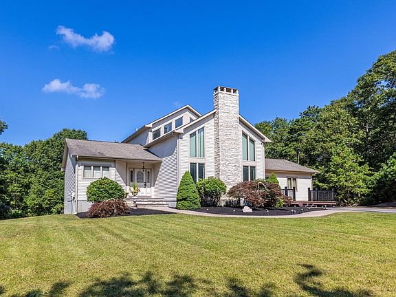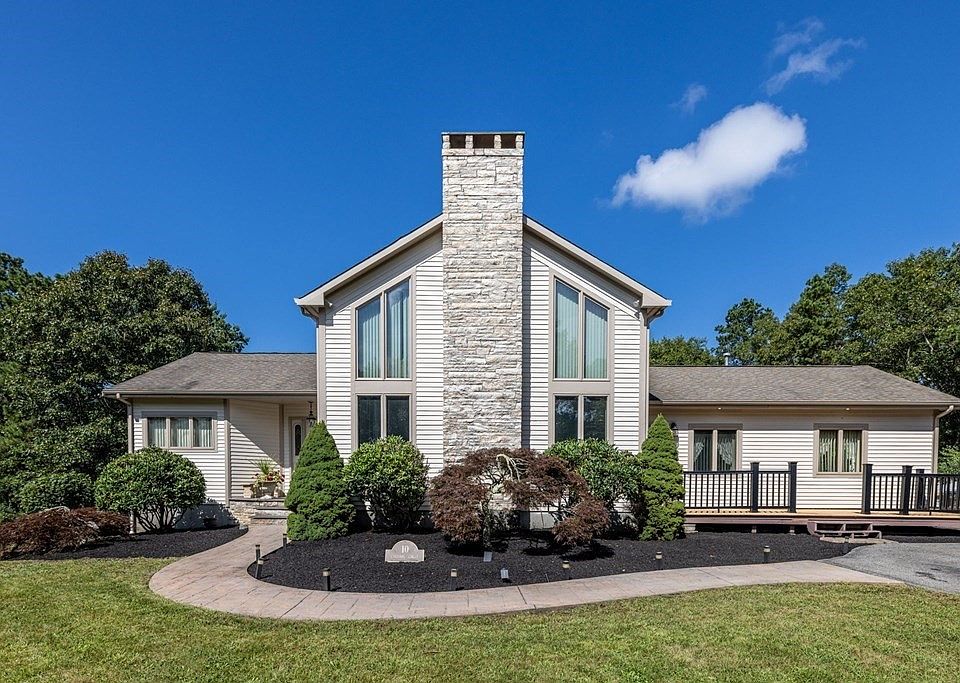 This Contemporary home sits at the end of a cul-de-sac inside Songbird Acres . Homes rarely come for sale in this subdivision located only 1 mile from the highway .This home contains 3 bedrooms with 4 full baths, central air, and a separate guest suite on the first floor with its own kitchen and living room . The main home has a fireplaced living room with hardwood floors and 2 story cathedral ceiling. Spacious kitchen with island has all grainte tops and stainless steel appliances . Main bedroom on first floor with 2 more bedrooms on 2nd with a full bath . Entire main home has hardwood and tile flooring . Semi finished basement and private large yard perfect for entertaining really completes this home .
