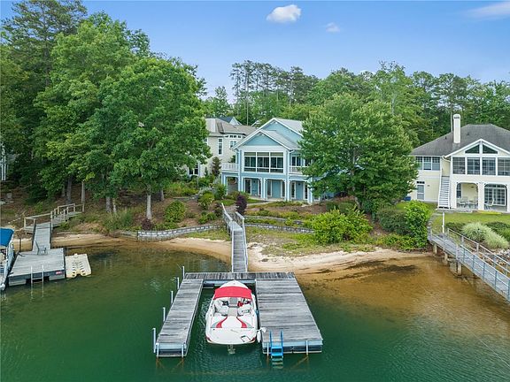 This custom-built home is the ideal lake house, with priceless views from many rooms throughout the house, multiple porches, a private dock just steps from your door, and an unbuildable lot across the street for extra serenity. Upon entering, you’ll find a large, open floor plan on the main level including a breathtaking sunroom for enjoying your morning coffee. The kitchen includes tall cabinets, an extra-large island, a unique, hidden pantry closet and ample counterspace. You’ll also have the advantage of open living and dining room spaces on both the main and lower levels. Enjoy the comforts of a spacious master suite, including pocket doors into your spa bathroom oasis with double vanities and a walk-in closet. Downstairs, you’ll find another large bedroom and full bathroom, perfect for your guests, and a picturesque, covered porch with another beautiful lake view. The lower level is also complete with two oversized storage rooms.
