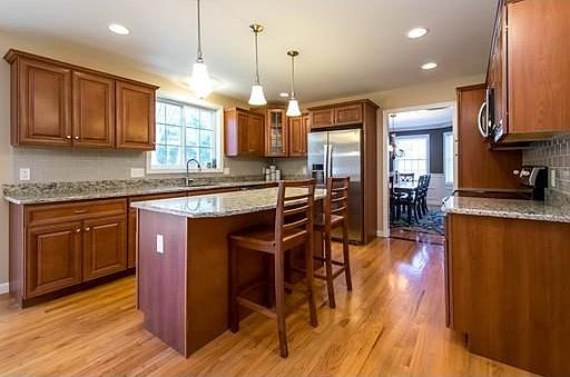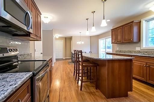 - Kit Dscrp: Pantry, Dining Area, Flooring - Hardwood, Countertops - Stone/Granite/Solid, Deck - Exterior, Kitchen Island, Stainless Steel Appliances, Open Floor Plan, Remodeled, Exterior Access