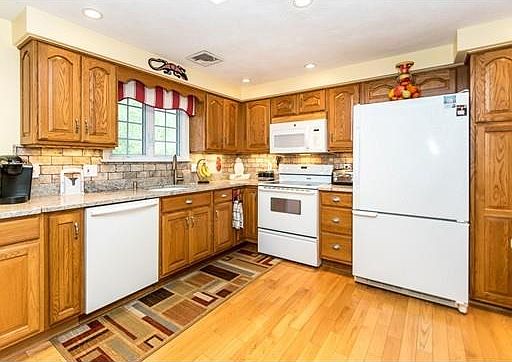 HIGHLY DESIRABLE LEXINGTON LINE! PICTURE PERFECT FULLY UPDATED HOME FEATURING large skylit granite kitchen, masonry fireplaced living room w/picture window, formal dining, three specious bedrooms, hardwood flooring throughout, fully finished lower level w/in-law potential, new rear deck, new roof, huge two car heated garage, manicured fenced rear yard, two storage sheds all abutting acres of conservation land! Easy access to all major routes!