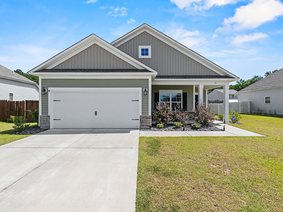 Welcome to 10 Carriagebrook Circle—a thoughtfully designed single-story home that blends modern comfort with smart efficiency. Built in 2020, this 3-bedroom, 2-bathroom residence has 1,567 square feet of open-concept living, perfect for both relaxing and entertaining.Step inside to discover a spacious layout filled with natural light and stylish finishes. The open floor plan seamlessly connects the living, dining, and kitchen areas, creating a warm and inviting atmosphere. The kitchen features granite countertops, an upgraded gas stove, and ample cabinetry—ideal for home chefs and casual cooks alike.Enjoy outdoor living on the covered rear porch, overlooking a newly fenced backyard that showcases privacy and space for pets, play, or gardening. The two-car garage comes equipped with a garage door opener, and the painted garage floor adds a polished touch.This home is packed with smart features, including Home Automation, irrigation system, and Lifetime Architectural Shingles for long-term durability. It’s also a NAHB Chips Certified Green Smart Home, with a HERS Index Rating of 58, designed with energy efficiency and sustainability in mind.Additional perks include a transferable termite bond, and the home is still under the builder’s warranty, giving you peace of mind for years to come. Best of all, it qualifies for USDA financing, making homeownership more accessible than ever.Located in a quiet, welcoming community, this home is the perfect blend of style, function, and value. Whether you're a first-time buyer, downsizing, or simply looking for a move-in-ready home with modern upgrades, this property checks all the boxes.Don’t miss your chance to make 10 Carriagebrook Circle your own—schedule a showing today and experience the ease of single-story living with all the extras you’ve been searching for. Disclaimer: CMLS has not reviewed and, therefore, does not endorse vendors who may appear in listings.