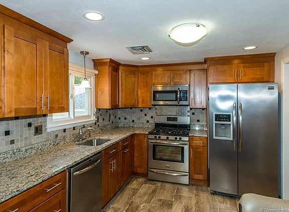 VERY WELL MAINTAINED HOME WITH NEW KITCHEN AND RENOVATED BATHS IN EXCELLENT LOCATION ON VERY QUIET STREET WITHIN WALKING DISTANCE OF NORFELDT ELEMENTARY SCHOOL AND HALL HIGH SCHOOL. FULLY FINISHED LOWER LEVEL - AN ADDITIONAL 450 SQ. FT. NOT INCLUDED IN SQUARE FOOTAGE. LARGE FENCED YARD. BEAUTIFUL 18X14 SUNROOM WITH LARGE HOT TUB INCLUDED. 6-ZONE LAWN SPRINKLER SYSTEM. ROOF AND BOILER RECENTLY REPLACED. PUBLIC WATER, SEWER & NATURAL GAS. CENTRAL AIR.