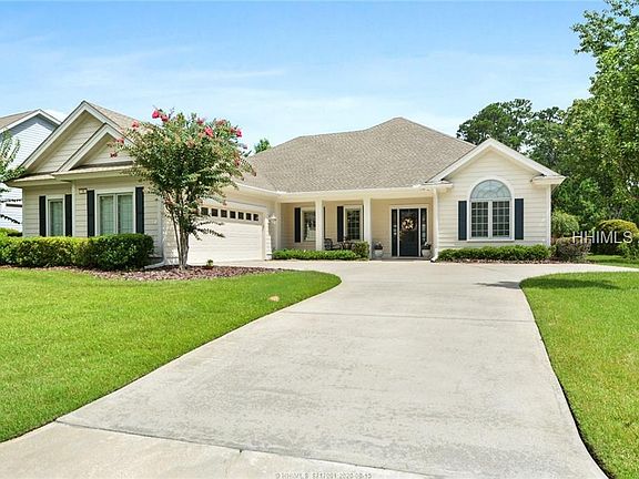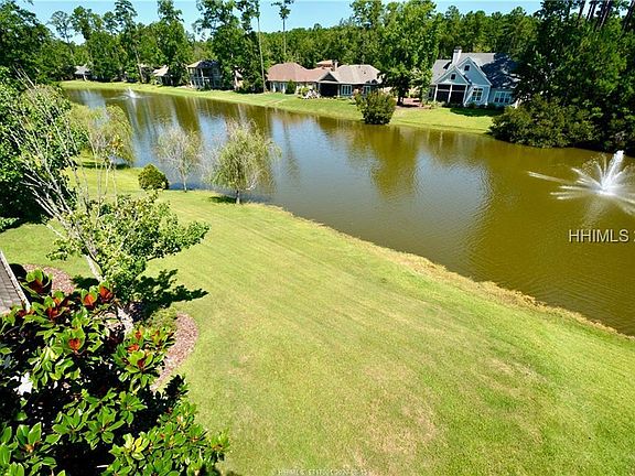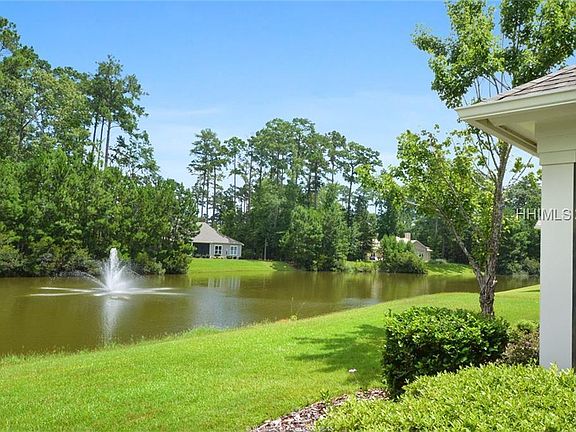 Fabulous lagoon views at this CUSTOM home featuring spacious lush green yard in Riverbend, Sun City's upscale gated community situated on the banks of the Okatie River. Riverbend provides all Sun City's amenities but is a smaller more intimate community w/wonderful residents. WOOD floors thruoutIn whose entire home so allergy free! Featuring 3 bedrms PLUS DEN/OFFICE, 2.5 baths, kitchen w/granite, stainless, & big breakfast area, upgraded cabinets. A formal Dining area, big Great Rm w/gas fireplace & surrounding built-in cabinets & shelving. Complete w/screened Lanai overlooking serene & extraordinary views w/spraying fountain! Golf cart gar!