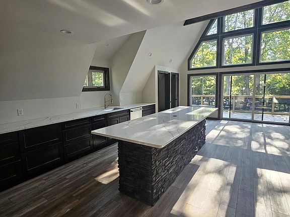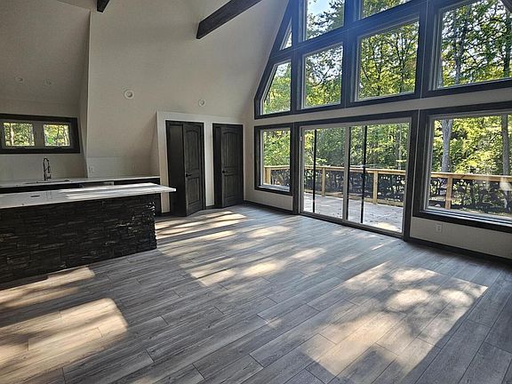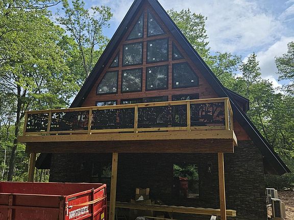 STILL AVAILABLE FOR SHOWINGS FOR NEW BUILDS The King of A-Frames, designed and built by the Poconos leading A-frame builder, Great Pocono Homes. This 3400 sq ft home makes for an elegant vacation home or STR. It features 5 bedrooms, including 3 master suites and 3.5 baths. The custom kitchen features Thor appliances, quartz countertops, and an eating island that seats 14. The large great room has a cathedral ceiling, corner stone fireplace, and lots of natural sunlight that opens to a large deck and a smaller coffee deck. The lower level, perfect for billiards or man cave, also has a large stone fireplace and stone and granite bar, and opens out to a stamped concrete patio and over an acre of property. Super high-efficiency zoned heating and cooling, standing seam metal roof, a combination of natural wood and stone siding round out the exceptionalism of this home. Seller has a working relationship with PA licensed real estate agent and builder. Call the listing agent or Great Pocono Homes for this or similar new construction opportunities in the Poconos.