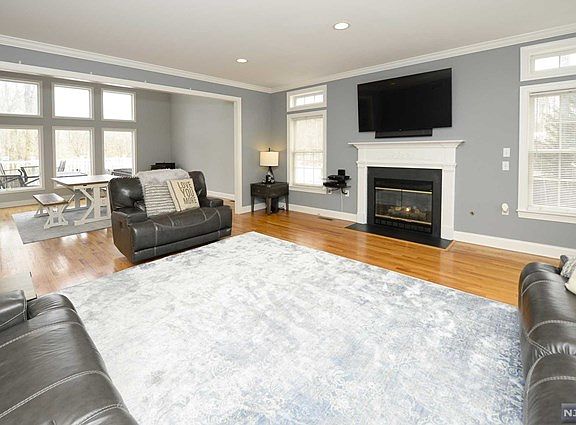 GORGEOUS CENTER HALL COLONIAL SITUATED ON A LARGE LOT ON A QUIET CUL-DE-SAC. TWO-STORY FOYER, LARGE WINDOWS AND CROWN MOLDING. FAMILY ROOM WITH FIREPLACE LEADING TO THE DINING ROOM WITH A 2-STORY WALL OF WINDOWS THAT PROVIDES NATURAL LIGHT THROUGHOUT. ACCESS TO YARD IN THE SPACIOUS KITCHEN THAT HAS SO MUCH STORAGE AND WORKSPACE. GRANITE COUNTERS, CUSTOM BACKSPLASH, STAINLESS STEEL APPLIANCES, PROFESSIONAL-GRADE STOVE AND A LARGE CENTER ISLAND. FORMAL LIVING ROOM HAS FRENCH DOORS TO THE OUTSIDE. 2ND FLOOR HAS 4 SPACIOUS BEDROOMS W/ GENEROUS CLOSET SPACE INCLUDING A BEAUTIFUL MASTER SUITE WITH AN OVERSIZED WALK-IN CLOSET AND ENSUITE BATH WITH SOAKING TUB AND SEPARATE SHOWER. BRAND NEW WALKOUT BASEMENT INCLUDES RECREATION SPACE, LAUNDRY, BONUS ROOMS, HALF BATH AND STORAGE. PATIO AND LARGE COMPOSITE DECK OVERLOOKING THE PARK-LIKE BACKYARD. PAVER DRIVEWAY, 3 CAR GARAGE. EASY ACCESS TO HIGHWAYS (287, 80, 202, 46), COMMUTER TRAIN AND BUS, SCHOOL, PARK & SHOPPING. ABOVE GROUND OIL TANK.