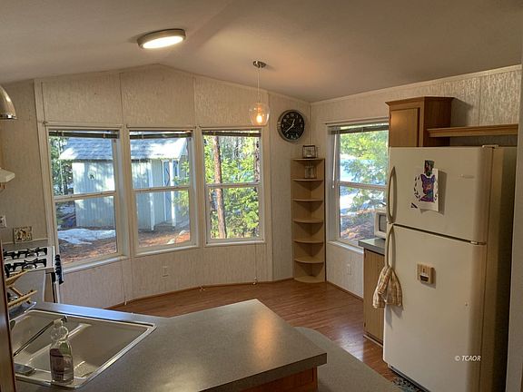 Are you looking for a sweet little mountain getaway? Well this is the home for you! This 3 bed/2 bath manufactured home located in Coffee Creek is right down the way from Trailhead Pizza, a short walk to Mann swimming hole, and close access to all of the hiking and backpacking trails in the Trinity Alps! The kitchen has a nice-sized eat-in area and a breakfast bar opening into the dining room. There are many updates and custom features throughout the home - you will just love the sliding barn door leading into the living room! Other updates include fresh paint throughout, new floors in the living room & master, a raised hearth & wood stove in the living room, and pinewood ceilings in one of the two guest rooms. The living room, master bedroom and bath were added to the home in 2011. The back deck is a perfect place to hang out and relax, with a new fence for added privacy. Or, enjoy the lovely mountain views right from your front porch! There are two sheds for extra storage space, and RV hookups for added convenience.
