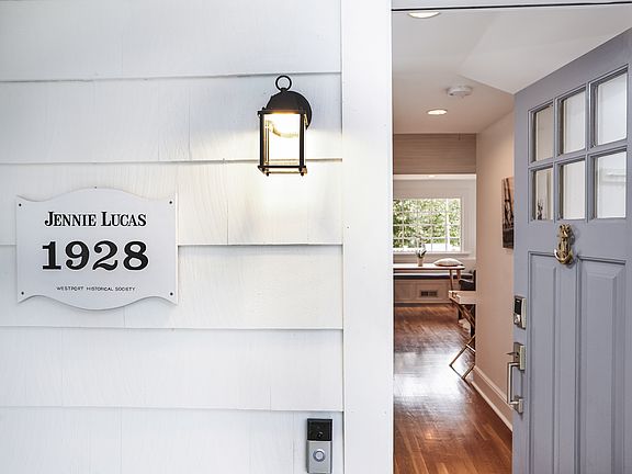 This eclectic cape is antique (no restrictions from town) from the outside and a completely renovated, modern house from the inside. The extensive list of updates include but is not limited to mechanicals, a whole property fence, new garage doors, inside- and outside painting, refurbished hardwood floors throughout, new dry-walls and ceilings. This home is move-in-ready and offers carefree living for many years to come. The unusual amount of natural light combined with vaulted ceilings and the modern open floor plan throughout the main level make this home cozy, yet airy and perfect for the up-to-date lifestyle. Open your french doors to the large deck to invite spring and summer. The deck offers ample space for casual lounging around a fire pit plus having dinner at a large table, entertaining or barbecues. From the deck you overlook the yard with another spot for your adirondack chairs or sunbeds to unwind in your very private setting just minutes away from town, train station, shopping, restaurants and the beach. This impeccable cape has it all!