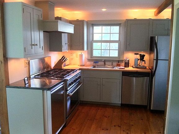Absolutely one of the most exquisite houses in the village. A restored two bedroom, two bath 1800s colonial with loads of charm andoriginal wideboard floors throughout, a block from Village Center. Good sized living room with working fireplace. Full dining room. An incredible modern stainless steel kitchen. Beautiful sunny family room opens to exquisite landscaped fenced yard. Two bedrooms with good closets. Two full modern baths; one up and one down. Washer and dryer. Carport. Owner mows and plows