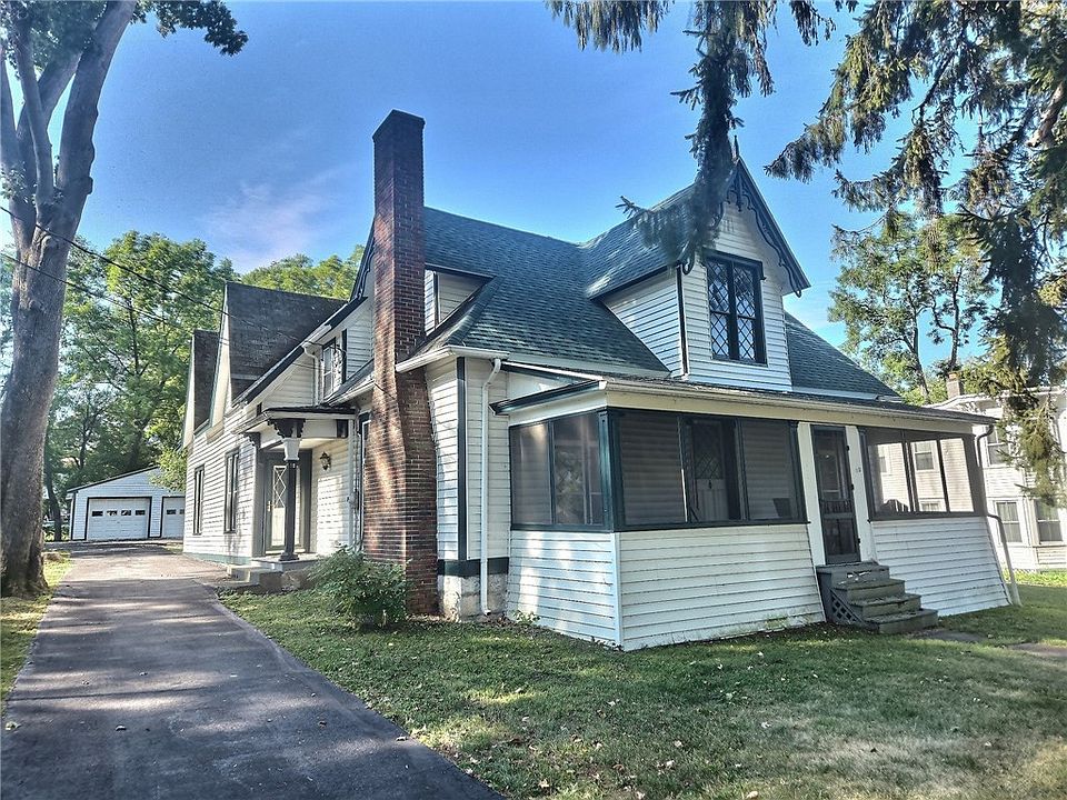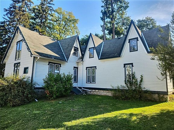 This truly enchanting Gothic Revival home in the heart of the village is a stunning historical gem, offering a unique blend of elegance and charm. Built in 1847, this 2548-square-foot residence captivates with its asymmetrical design, steeply pitched gables, and intricate millwork that showcases its remarkable Carpenter Gothic heritage. The welcoming screened porch is a perfect spot for morning coffee or relaxing evenings, while the interior's original character shines through with beautiful built-in cabinets and shelving. With four bedrooms and two full baths, there’s plenty of space for everyone. The detached two-car garage provides convenience and additional storage. Serviced by public water and sewer, and featuring a newer boiler, this home is set up for comfortable living. Although it needs some TLC to restore it to its full glory, its tremendous potential is undeniable. Located in the Union Springs school district, this property is a rare find, just a short walk from Cayuga Lake and all the village amenities, ready for its next chapter and the opportunity to become a truly spectacular residence. The classic design and historical details are simply captivating, making this home a truly special place to live.
