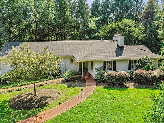 Come and see this sprawling, 3 bedroom ranch situated on over an acre in beautiful Fox Chapel. Gorgeous curb appeal draws you in as the red brick sidewalk leads you to the door. Inside, an open entryway beckons you into a large living room w/stone hearth fireplace, flooded with natural light through a wall of windows and door leading out onto the wrap-around back deck. The central dining room is a great place for gathering, and hardwood floors lead you throughout most of the main level. The eat-in kitchen offers tons of cabinet and counter space and the bonus sitting room focuses around a cozy brick-hearth fireplace. Down the hall, 3 generously sized bedrooms include a large Master BR with a private master bath. The 2nd bedroom offers a huge walk-in closet, currently utilized as a flex/office space. The finished lower level offers even more functional living space w/ a full bath, family room and walk-out, screened patio. Outside, mature trees provide a private atmosphere. Welcome Home!