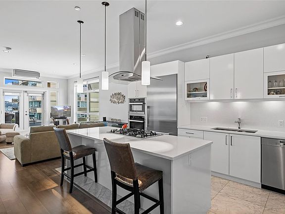 Located just steps from Nanaimo’s waterfront & vibrant downtown core, Unit 404 at the Aqua Residences offers the ultimate in West Coast living. This luxurious 3-bedroom, 2-bathroom corner unit is filled w/ natural light & features a contemporary open layout, perfect for entertaining or quiet nights at home. The chef’s kitchen boasts quartz countertops, soft-close cabinetry, a walk-in pantry & a premium Miele appliance package. Both the living room & primary bedroom open onto a large, covered patio with sensational views of the Harbour Channel & coastal mountains. The primary suite includes a walk-in closet and spa-inspired ensuite w/ heated floors, a soaker tub, walk-in shower & hidden TV in the mirror. With 10' ceilings, dual heat pumps, in-suite laundry & hot water on demand, every detail is designed for comfort & efficiency. This pet & rental-friendly building has no age restriction, includes underground parking, a gym & easy access to the float plane, Helijet & Hullo Ferry.
