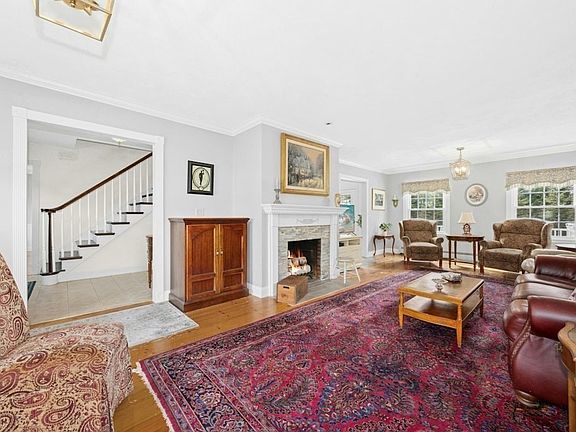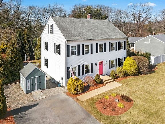 Located in cul-de-sac neighborhood ~ this 4 bedroom/2.5 bathroom Colonial home. Large front to back living room with beautiful fireplace mantel and hardwood floors. Formal dining room has a built-in hutch and hardwood floors. The updated kitchen with stainless steel appliances, gas stove, wood floors, dining area and plenty of kitchen cabinet space First floor half bath. Great natural light throughout this home. Second floor has four bedrooms. Remodeled main bathroom with Corian countertops, tub & shower and tile floor. Primary bedroom has double closets, hardwood floors and private bathroom with shower. Finished basement has family room with carpet and recessed lighting. Laundry room with washer & dryer, workshop with workbench, and storage area. Large Deck with patio area overlooking landscaped back yard with birdhouses. Gas heat and gas cooking. Shed. Town Water & Sewer. Located near Northborough Crossing. Close to major highways and commuter rail. Well maintained. A must see!