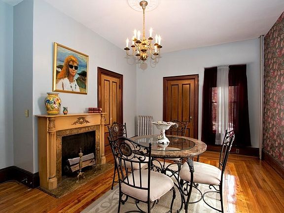 Gorgeous Italianate style home with carriage house. Use as a 4-5 bedroom single or convert it back to a 2 family with minimal construction. This home boasts beautiful period details throughout. American black walnut staircases, hardwood floors, light fixtures accented with plaster medallions, Oak/walnut baseboards, crown molding and high ceilings. EIK has SS appliances and pantry. The sunny second floor has a deck off the kitchen, tiled bath and access to the walk up attic. Heating system is a 2 pipe steam system by natural gas . Some updates include Weil-McLain boiler, vinyl tilt in windows, blown in insulation, newer roof and aluminum chimney liner. The carriage house has a second floor perfect for studio/workshop. It is partially insulated has 220 volt electricity and has wood furnace for heat. Walking distance to the middle school and conveniently located to major routes, public transportation, local shops, restaurants, dog park, and abuts a playground.