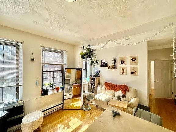 This two bedroom has great sized bedrooms that are fairly equal in size. A queen sized bed and a desk would easily fit in each. There is an eat in kitchen with dishwasher and disposal and a newer bathroom. Tons of windows in the living room! Hardwood floor throughout! Located on a side street in the North End. Very close to the hustle and bustle of Hanover Street but far enough away that the street is not congested with tourists. Available September 1 One year lease. Tenant pays utilities
