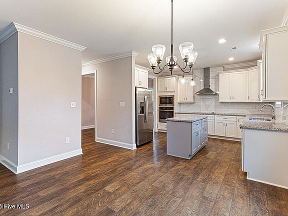 Built in 2022 on a quiet culdesac in popular Pinehurst No.6, this 2605sf home has an open gathering/kitchen area plus a private study, formal dining room and a sunroom on the main level; 2nd level has all 4 bedrooms plus laundry room. Not just spacious, but the many big windows give a light-filled presence to the pale grey interior throughout. Nearly new appliances plus washer/dryer will stay as well as the TV over the fireplace. And the spirit of your inner farmer will have space to plant flowers and vegetables in the front/side yard.