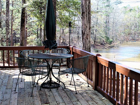 BACK ON THE MARKET! Airbnb, vacation home, or a super place to call home, this adorable waterfront log home is waiting! 2 bedrooms on main, upstairs loft/den with vaulted ceiling (maybe use as a 3rd bed?), 1 bath and large kitchen/living with woodstove. Cabin has gorgeous wood ceilings and walls, tin roof, and spacious front deck overlooking water and property. Extensive updates/ upgrades to the cabin include: HVAC, stove and tin roof (approximately 3 years), New LVP wide-plank flooring, New decking, Painted foundation/skirting, Septic pumped/inspected (2019), Chimney flue & stove inspected/cleaned (2019), Termite inspection (2019), New Hot water heater valve and dryer venting, New toilet, plumbing updates and numerous other updates to the wonderful 1973 cabin which feels like a new home! Amenities include community pool, lake and tennis make this a rare affordable find in Pine Mountain. 210 Warranty offered by seller.