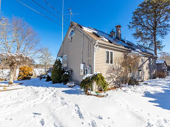 Waterfront on Queen Sewell Pond in Bourne! 3 bedroom/2.5 bath Cape with stunning water views from several rooms. Enjoy eating in the open concept kitchen with a breakfast nook, tile floors & recessed lighting that easily flows into the living room which opens to the cathedral sunroom overlooking the pond with sliders to the deck for summer entertaining. Wake up in your 1st floor bedroom with built-ins & a slider, have a cup of tea on your covered deck overlooking the water. 2 spacious bedrooms up stairs with a half bath in hallway. Additional full bath on the main floor & laundry off the kitchen. New natural gas heat & hot water with 95% efficiency, town water & passing Title V on file. Its ideal for someone who wants a great commuter location. Children and adults will enjoy playing at the park close by. This home is at the end of a quiet street and has Solar Panels with monthly payments less then $15. Be in for the summer to enjoy.