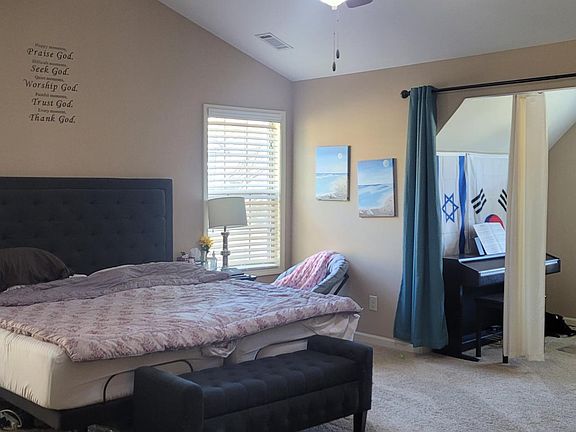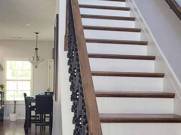 The Quality is Evident! So Many UPgrades!! Just like new! Main-level hardwoods, wrought iron railing, granite counters, stainless steel appliances, kitchen island, coffered ceiling, & gorgeous moldings throughout! Storage cubbies at garage entrance, garden tub & over-sized tiled shower in master suite and tiled tub surround and floor in 2nd full bath.Spacious vaulted ceiling bedrooms & master with sitting room! Private backyard with permanent covered patio for game day entertaining! On one of the only cul-de sacs! Foam insulation & double pane windows!