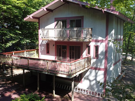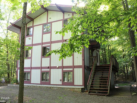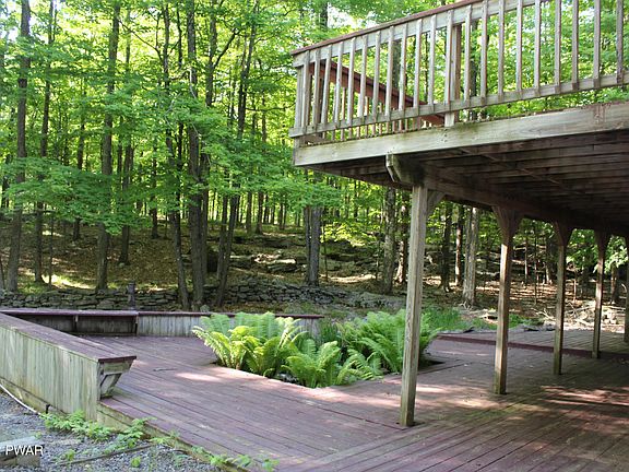 This German Chateau sits on a quiet cul-de-sac in the amenity -rich Hideout. Landscaped with Koi pond, multiple decks with outdoor seating, shed, park-like setting with privacy and a u-shaped driveway. The interior features 3 finished levels, 3 bedrooms and 3 full baths. Rich wood interior, Galley kitchen and separate dining area open to the living room. This home is located in The Hideout- The Northern Poconos premiere gated community. Amenities include a 9 hole golf course, Indoor Sports and Recreation Complex with 2 full sized tennis courts, game room, multipurpose rooms and fitness center. There is a full service restaurant and pub open year round and several seasonal snack bars. The largest of the 3 private lakes allows motorboats and there are beaches and parks for all to enjoy