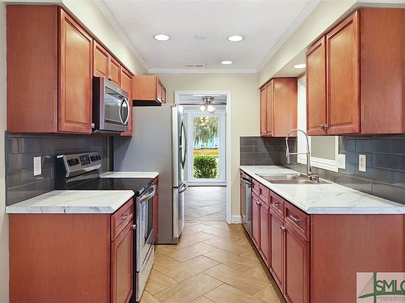 Located in an amenity packed neighborhood close to all that Savannah has to offer! This home is on a large lot with beautiful mature landscaping. Opening the front door you are greeting with a foyer entry and a spacious dining room. The dining room opens to the kitchen which has stainless appliances, tile backsplash, and a breakfast nook. This home features a living room and a den with large windows overlooking the yard. The secondary bedrooms share an upgraded bathroom with a walk in tile shower. The primary suite has built ins and an ensuite bathroom with a walk in tile shower with a bench. There is also a large laundry room with an abundance of cabinetry. Schedule to see this gem today!