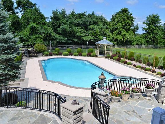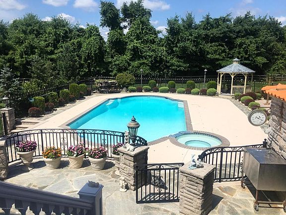 The Cover Photo, Overhead Drone Shot, & Gorgeous Pool, Take Your Breath Away. This luxurious home in "Rancho Polo" Estates Colts Neck, NJ forces you to Exhale. The first flr. includes a Master Bedroom (fireplace, 2 Walk-in closets) in-law suite w/full bath, professional office, huge great room, & gourmet kitchen with 45'' cherry wood cabinets, granite countertops, 6 Burner Thermador stove, Kitchen Aid refrigerator, dishwasher & oven. Second flr. has 2 Jack & Jill bedrooms, one w/an amazing balcony view. Designer elements include granite flrs. (radiant heat beneath), lighted crown molding in kitchen & foyer (26' ceilings), surround sound, state of the art intercom system tied to phone lines, 16 zone radiant heating system /6 zone air condition and more. BREATHTAKING! Exhale and then Hurry!