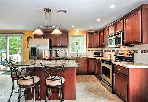 - Kit Dscrp: Pantry, Dining Area, Countertops - Stone/Granite/Solid, Flooring - Stone/Ceramic Tile, Kitchen Island, Recessed Lighting, Balcony / Deck, Slider