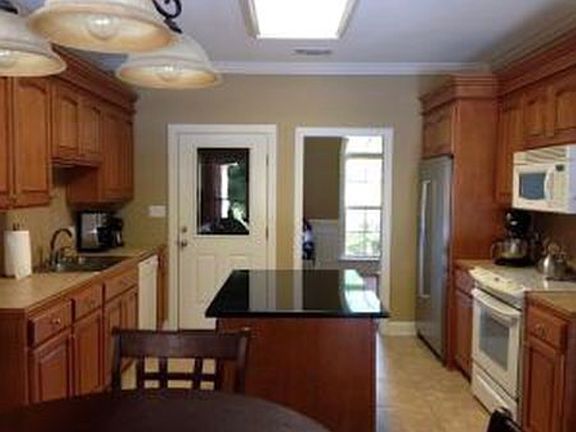 - Kitchen Features: Ceramic Tl Cntr Tops, Dishwasher, Disposal, Microwave, Range, Work Island, Granite Counter Tops