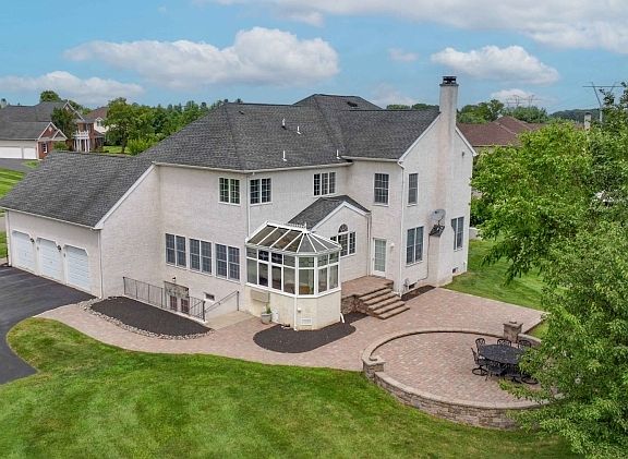 Introducing 10 Claridge Lane, an expanded Coventry model in the prestigious Hunterdon Hills Estates by Toll Brothers, it is offering over 7,000 sq. ft. of refined living space on one of the largest lots in the community. This residence blends architectural elegance with modern luxury, featuring 5 bedrooms and 6 full baths. The main level showcases a gourmet kitchen w/ a 10x3 island, Viking 6-burner range, dual ovens, and butler's pantry, flowing seamlessly into the sunroom, family room, formal living and dining rooms, and a striking conservatory. A versatile first-floor bedroom/office with an adjacent full bath enhances the home's flexibility. Upstairs, four bedrooms each feature ensuite baths, while the primary suite offers dual walk-in closets, a spa-inspired bath with soaking tub, and oversized shower. The walkout lower level is designed for entertaining, complete w/ a custom 12-ft live-edge bar, copper sink, beverage refrigerators, expansive wine cellar, home gym, and acoustically designed theater. A luxurious spa bath includes a 7x6 steam shower with rain head, river stone flooring, seamless glass, and mood lighting. Outdoors, enjoy a large multi-tiered paver patio, perfect for gatherings, overlooking the expansive backyard. Additional highlights include a GarageTek storage system, full-house standby generator, abundant natural light, and meticulously curated finishes. A rare opportunity to own one of the premier homes in Raritan Township's most desirable neighborhoods.
