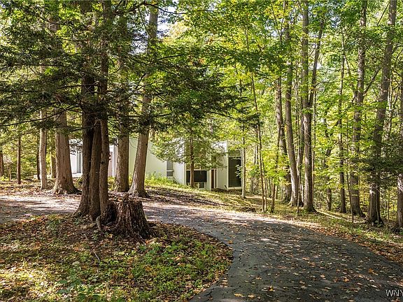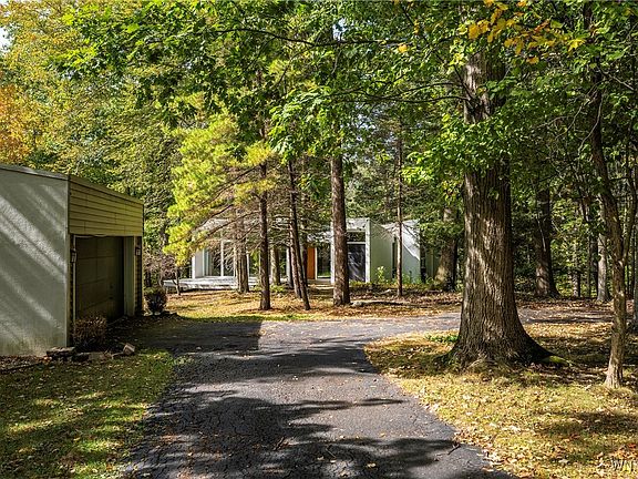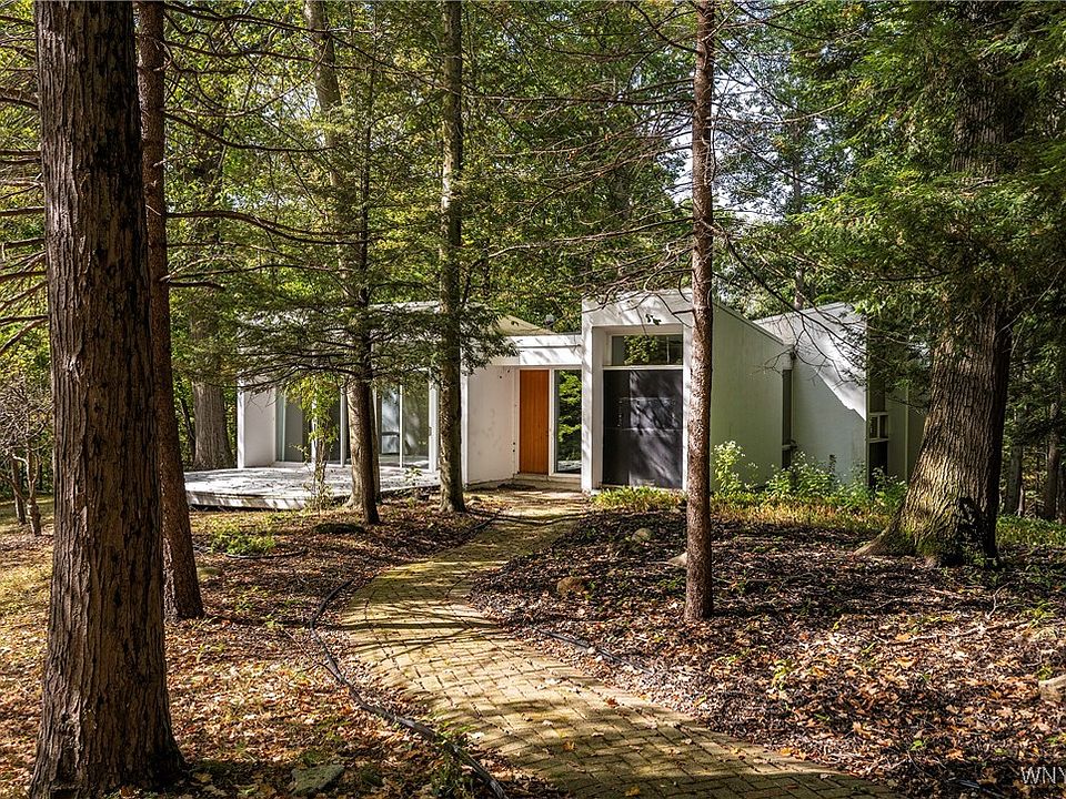 Spectacular contemporary home nestled among the trees. This unique property features a kitchen and family room that over looks a spacious deck and yard. The living room and dining rooms boast extra large windows, offering beautiful views of the surrounding trees