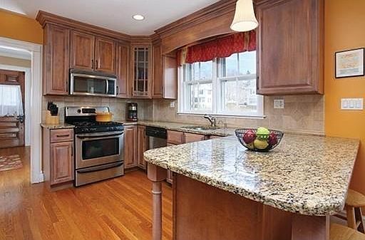Conveniently located in Newton Upper Falls, this three plus bedroom, three full bathroom home, offers over 1,700 square feet of living space on two levels, with the lower level providing 504 square feet of finished space. The first floor boasts an updated kitchen with granite countertops, living room and a formal dining room with built-in china cabinet, window seat and gas fireplace. The second floor offers two bedrooms, an office and full bathroom. The third floor is comprised of a bedroom with en suite bathroom. The lower level, currently used as the master bedroom with en suite bathroom, could also be used as a family room/playroom. Other highlights include a nice deck and patio with a fire pit and hot tub, central air conditioning and wood floors. This property is located close to shops, restaurants, public transportation and highway access.