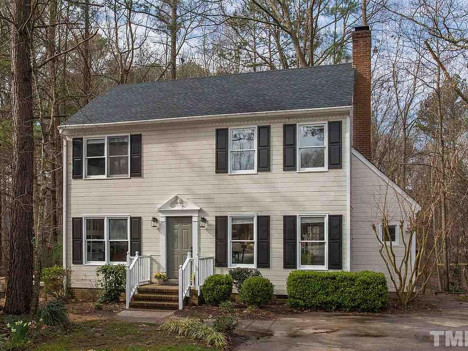 Beautifully updated home in a cul-de-sac on a peaceful wooded lot in Woodcroft! Large FAM RM includes cozy masonry fireplace with plenty of room to entertain. Open Kitchen features SS appliances, ample cabinetry, and large breakfast area. Separate Dining Room offers wall of built-ins can be used as Home Office. Owner suite features his/her closets, & private bath. 2 additional bedrooms share full hall bath.Tons of natural light and low maintenance landscaping. Close prox. to walking trails and Southpoint!
