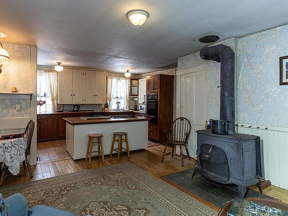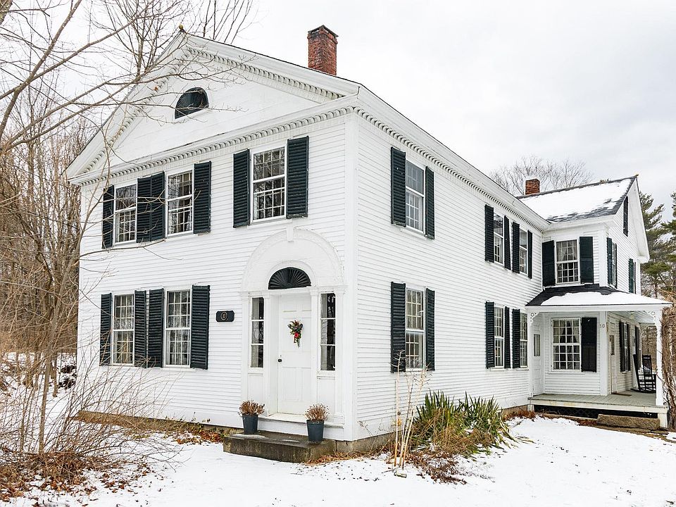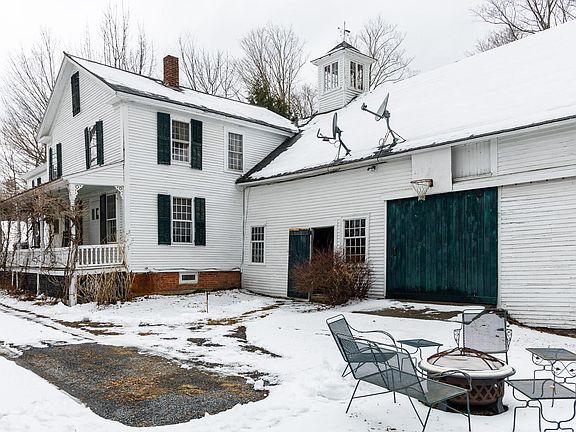 Visit this amazing antique, colonial in amongst other period homes and next to the beautiful Silsby Library. The Property has some amazing features. Original stenciled doors, original chair-rails,revolving bookcase, original soapstone sink in the laundry room and original wood floors thru out. Enter from the covered porch into the cozy family room/kitchen that is heated by a wood stove. Off the family room is an office.Fiber Broadband so everyone can work from home.The Kitchen has wide plank countertops with an island of the same.Gas cook top is in the island, wall double ovens and long space for preparing meals. Tons of cabinets in the kitchen and the floor is tiled. The living room is the whole width of the home with a fireplace on the north side for your Christmas get-togethers.Huge dining room off the Livingroom with plenty of room for extra side tables to hold your good dishes. The 2nd floor can be accessed by 2 staircases, The front hall and the back staircase which comes down to the kitchen. In the center is a wonderful library/sitting room surrounded by 5 bedrooms, a full bath & an additional office.Off the kitchen is a mud room/Laundry with access out to the large breezeway that will hold all your wood for the winter nights with a full 2nd floor for storage. Beyond this, is the large barn room for pool table, Ping-Pong table or great for a workshop and to store the snowblower or lawnmower. Enjoy the over 3 acres,for gardens(greenehouse),skiing,flowers and more!