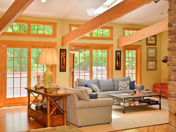 Clean lines & craftsman-inspired touches characterize this airy Upper Saddle River home. Distinctive design on tranquil cul-de-sac. Beamed open layout & floor-to-ceiling stone fireplace highlight living area, open professional Kitchen w/ stainless appliances, wine refrigerator, granite countertops, prep island & separate island w/ seating & Family Room w/ French doors to deck & pool area. Completing main living level are 4 bedrooms w/ 2 Jack & Jill baths, perfect for multi-generational or extended living. Private Master Suite w/ vaulted ceiling, sitting room & luxurious bath on 2nd floor. Finished walkout lower level incl office/bedroom, full bath, den w/ second working fireplace, recreation/exercise room & private entrance. Manicured property w/ terraced gardens, fenced backyard w/ multiple patios, Saltwater Gunite pool & spa, & lawn backing to woods. Newer mechanicals incl natural gas generator. A private & welcoming home for today's living. Relax & stay awhile!