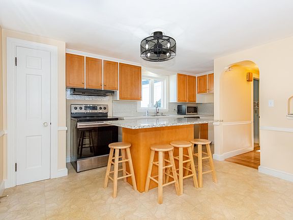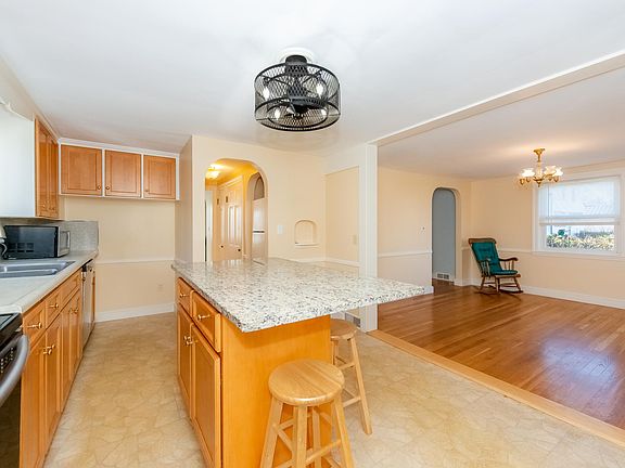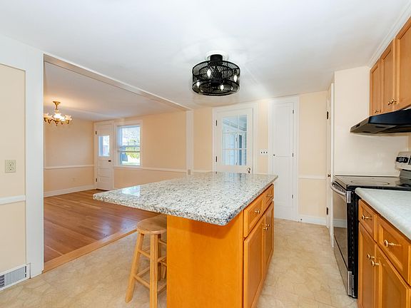 Just listed! Immaculate and move-in ready! Two bedroom, 2 bath Cape located in a peaceful residential neighborhood on a dead end street, just around the corner from the Portsmouth Naval Shipyard. Hardwood floors throughout. Kitchen with handy center island with plenty of cabinets and pantry. Washer and Dryer located in first floor bathroom. Back to front spacious living room with fireplace flanked by built-in shelves. This leads into a 12' by 22' family room with propane stove. Family room (or could be a bedroom) opens up to a deck overlooking pretty backyard. Two bedrooms and full bath on the second floor. Convenient breezeway/ mudroom and attached one car garage. Sprawling lawn and fabulous backyard . Owners also take care of lawn maintenance. Tenant pays for utilities: propane fuel, electricity, cable/internet, town water & sewer and plowing the driveway. Credit check required. Showings by appointment. Owners will consider pets on a case by case basis. No smokers. First month and security deposit, a total of $5200 due at lease signing.