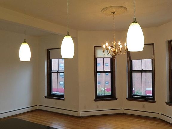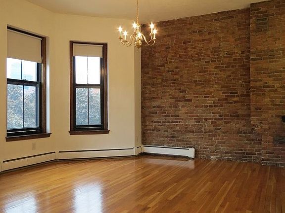 South End... Columbus Square at W. Newton St.. Large Entire Upper Floor One Bedroom Apartment in wonderful location steps to the Prudential Center in the heart of the South End. Hardwood floors, very high ceilings, nice-sized living room with dining or office alcove, bay window and exposed brick with views of the Prudential Center & Columbus Sq, very large bedroom with office alcove, bow window and very large closet, large open fully-applianced kitchen with granite countertops, new tiled bathroom. Private Deck with sunny southern exposure. Cats OK. Common laundry. Heat & hot water included. One Month Fee. Available 2/1 for $2750.